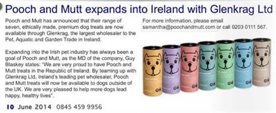 "Pooch and Mutt has announced that its range of seven, ethically-made, premium dog treats is now available through Glenkrag, the largest wholesaler to the pet, aquatic and garden trade in Ireland.