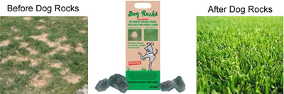 Dog Rocks hold special properties that actually mean pets will be fertilizing lawns, rather than destroying them. The paramagnetic igneous rock absorbs from the water some of the impurities that turn the grass brown, they act like a sponge and reach a saturation point at around 2 months when they need to be changed.