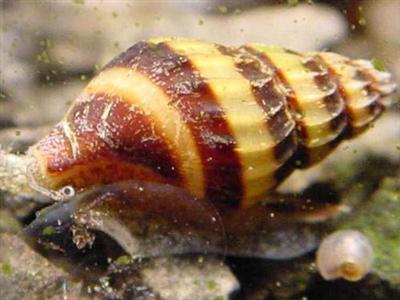 The Assassin Snail (Clea Helena) is regarded as many as the best snail killing animal in the hobby. The Assassin Snail will bury itself in the sand or whatever substrate is available, and once another snail passes it will pounce and quickly subdue the offending snail.